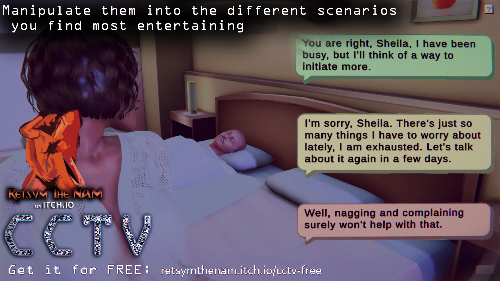 CCTV is an adult game, step into the role of the STEP-father and secretly control the chaos! Spy, manipulate, and stir up drama in your household for your own amusement in this erotic adult-only simulation.